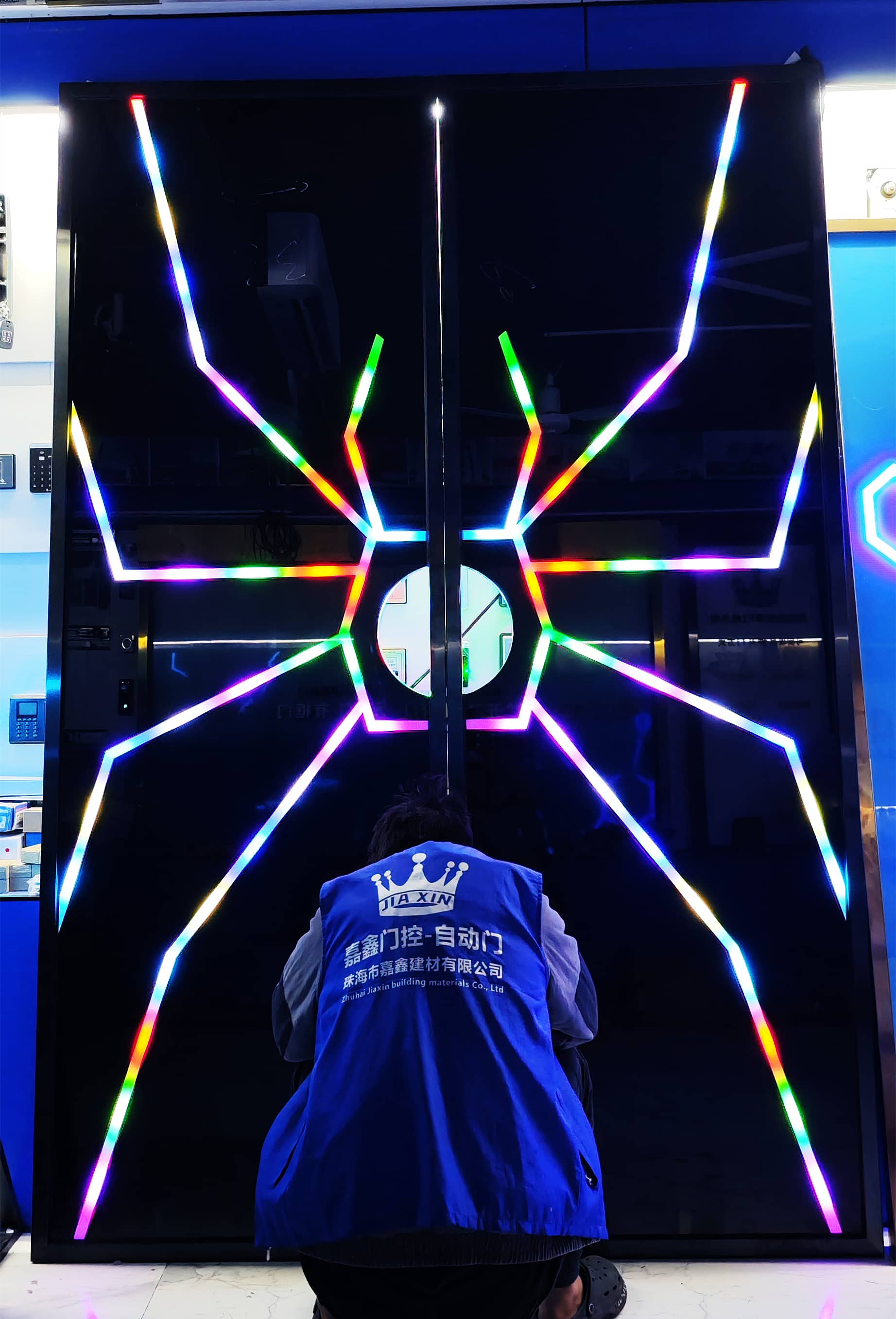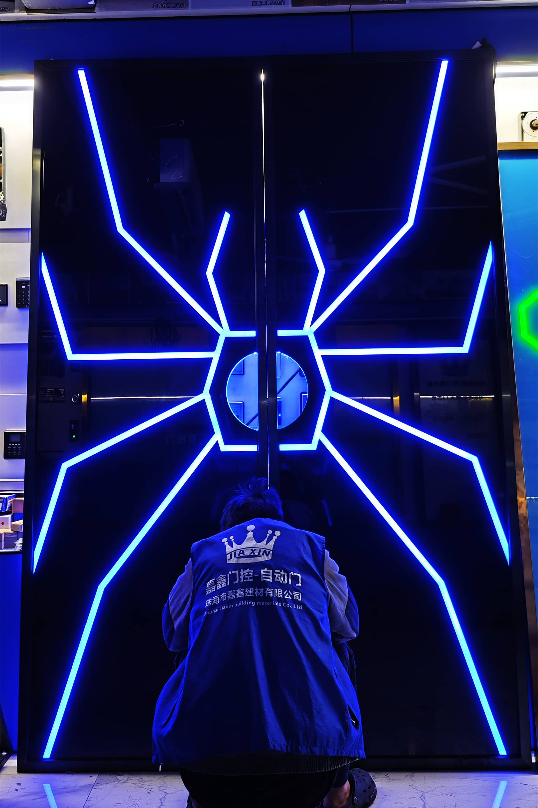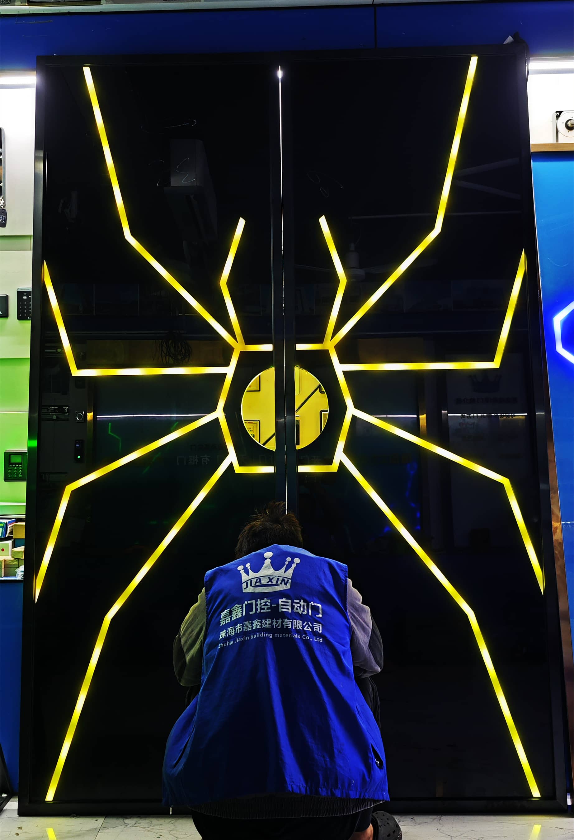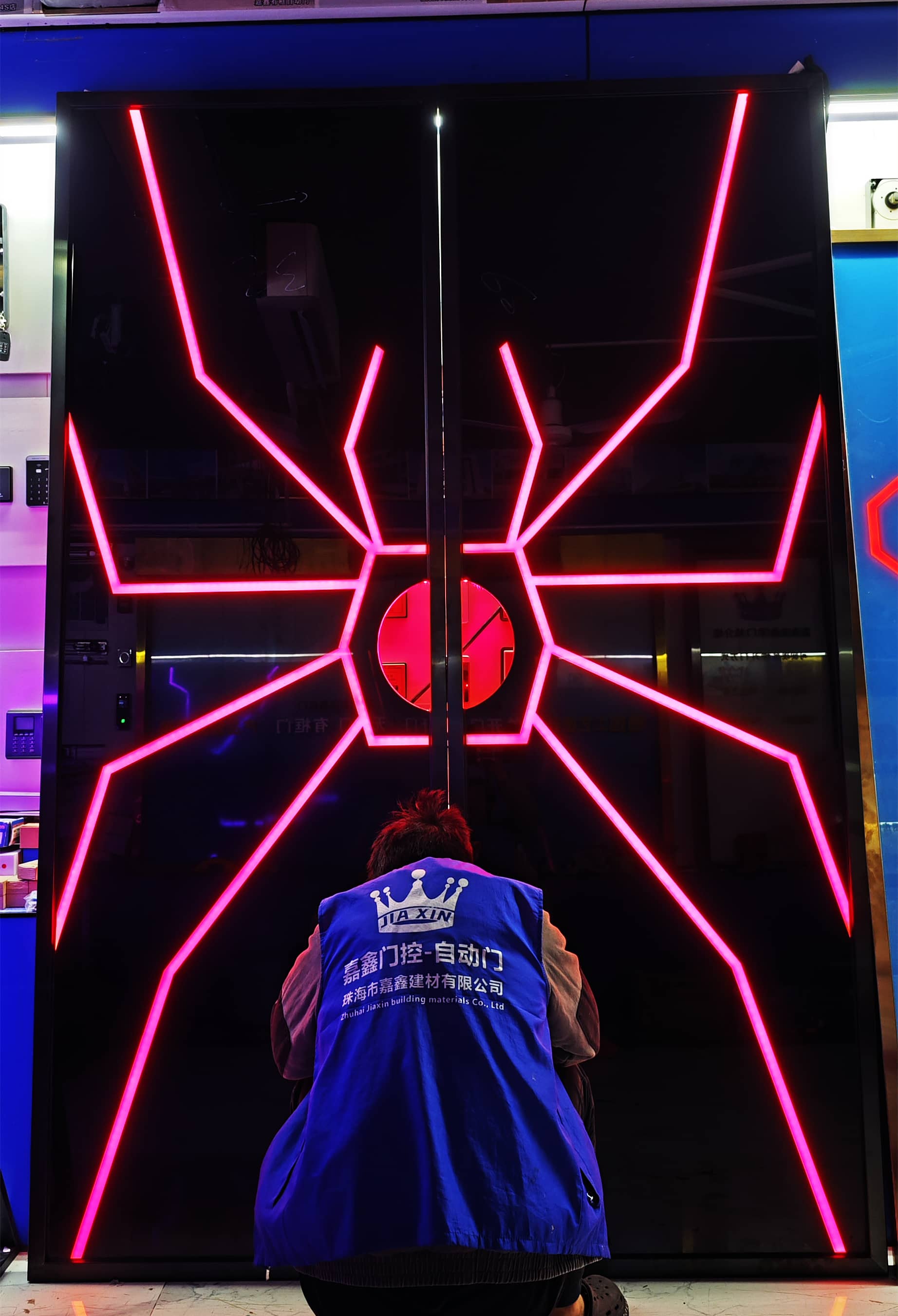网红门生产 电竞馆网红手掌玻璃门-科技门-科技感应门|网红门|炫酷手掌门|感应发光门设计|网红科技门-广东网红门-珠海市香洲区盖卓自动门控中心