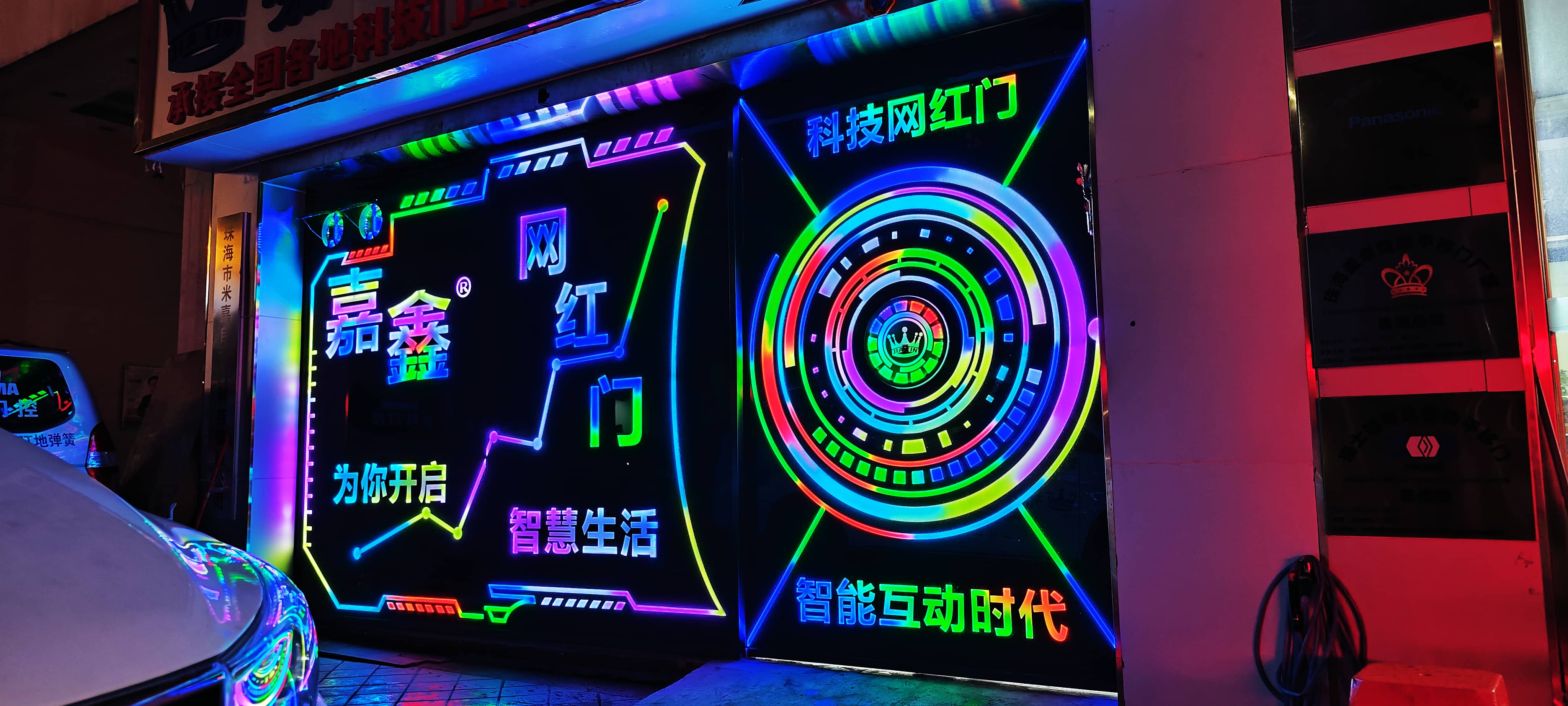 网红清吧玻璃门 科技发光门-科技门-科技感应门|网红门|炫酷手掌门|感应发光门设计|网红科技门-广东网红门-珠海市香洲区盖卓自动门控中心