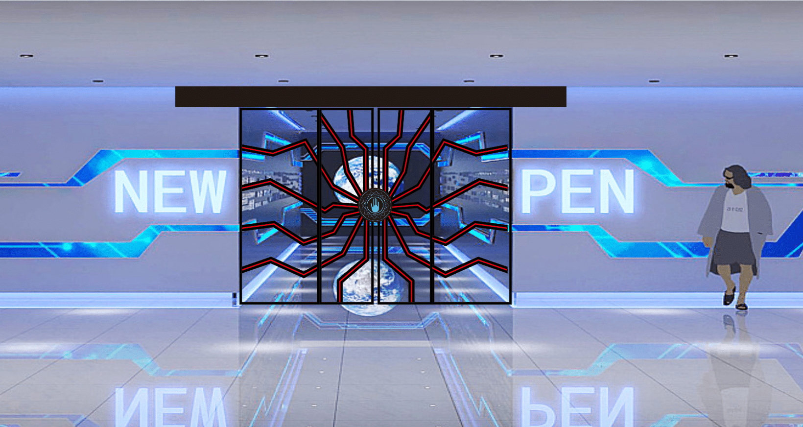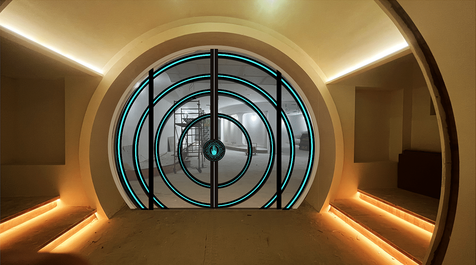 手掌科幻感应门设计-密室门-科技感应门|网红门|炫酷手掌门|感应发光门设计|网红科技门-广东网红门-珠海市香洲区盖卓自动门控中心