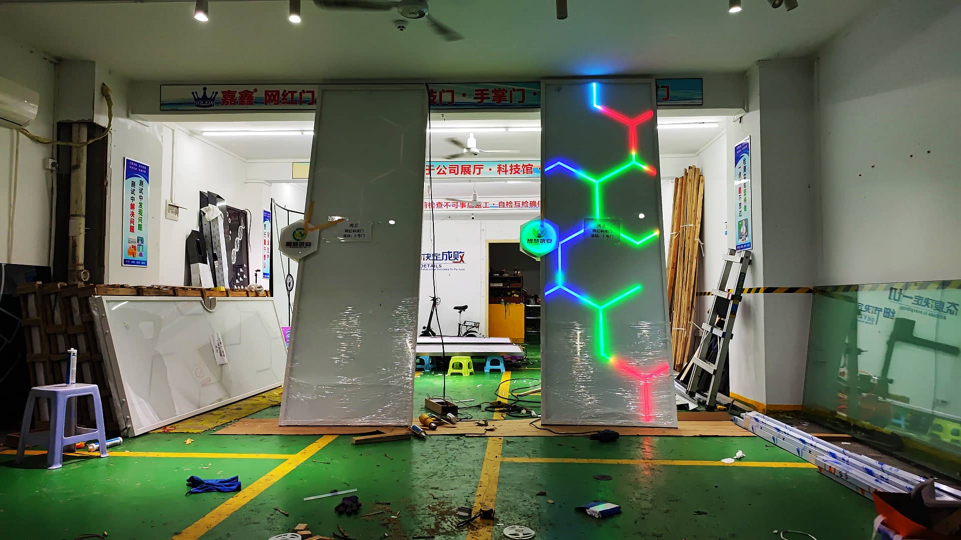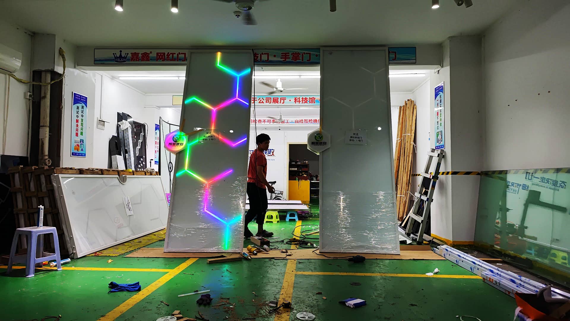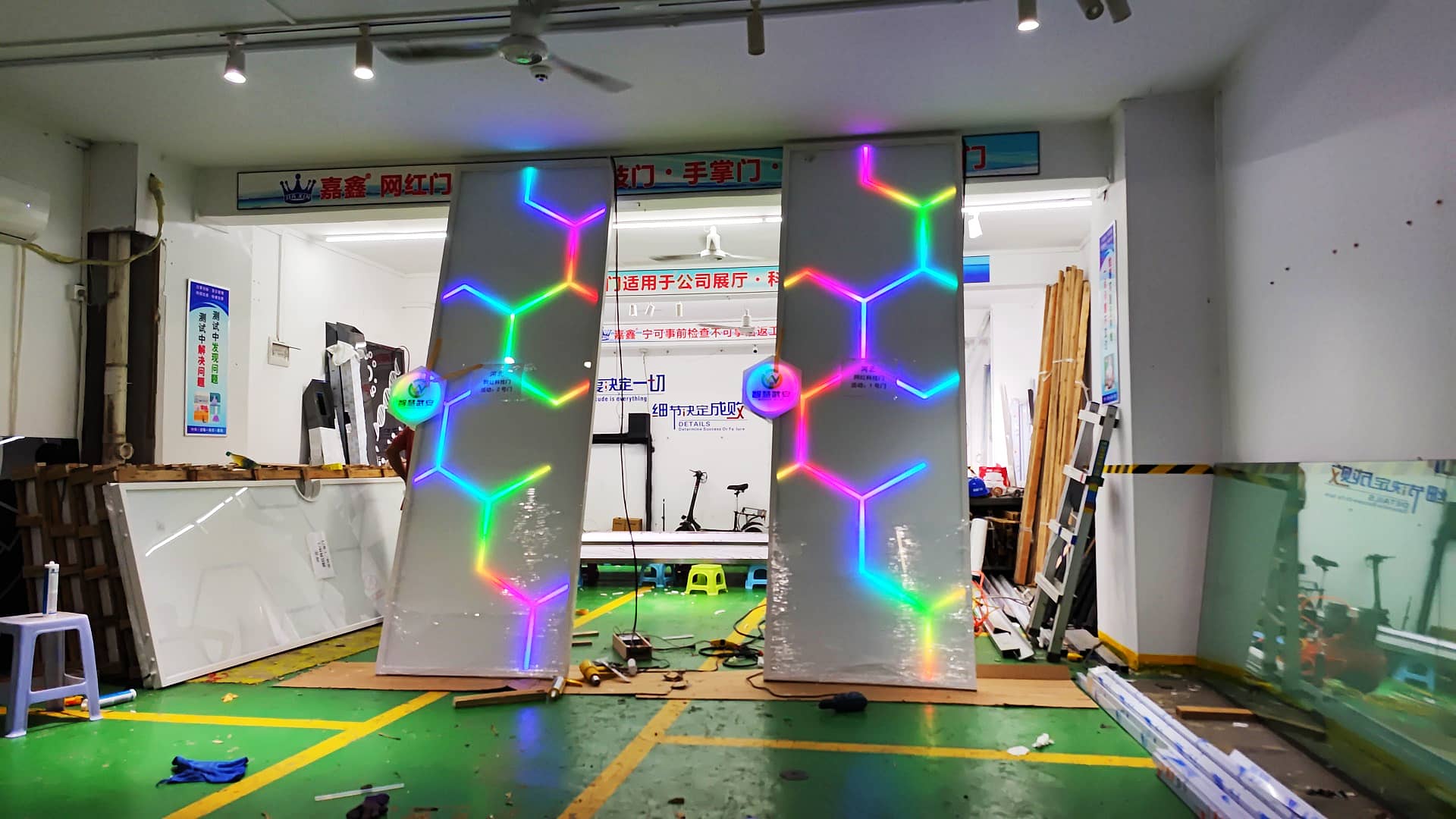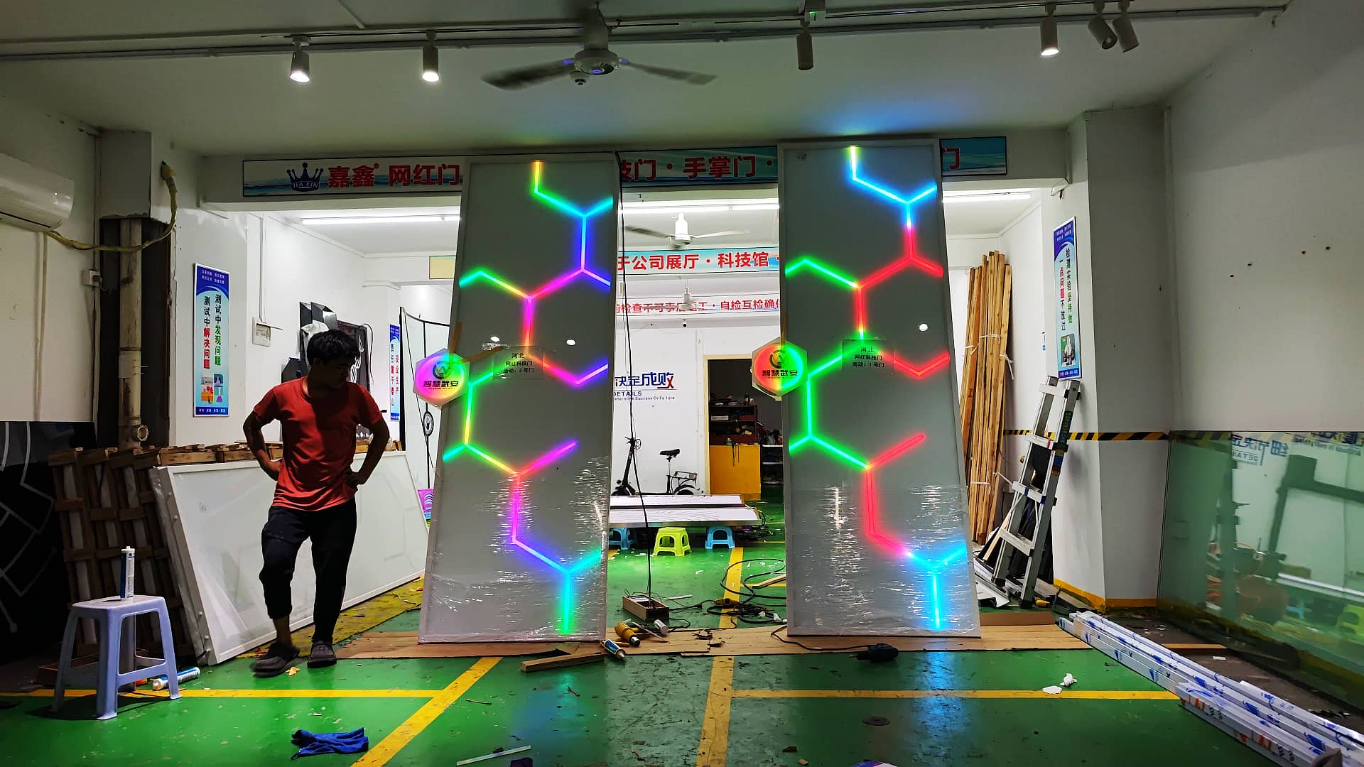 室内乐园网红智能平开门-手掌门-科技感应门|网红门|炫酷手掌门|感应发光门设计|网红科技门-广东网红门-珠海市香洲区盖卓自动门控中心